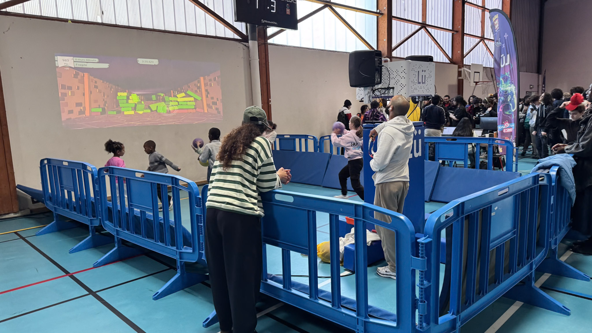 Par ailleurs, le service de Montmagny proposait un espace à la fois sportif et ludique, avec du biathlon, du baby-foot, du tennis de table, du basket et des jeux de société géants. Un espace LU, comprenant un mur interactif avec des jeux sportifs, pédagogiques et éducatifs, était également installé. Cette complémentarité entre activités physiques et gaming reflétait une volonté d’offrir une expérience équilibrée, capable de satisfaire tous les goûts et tous les niveaux.