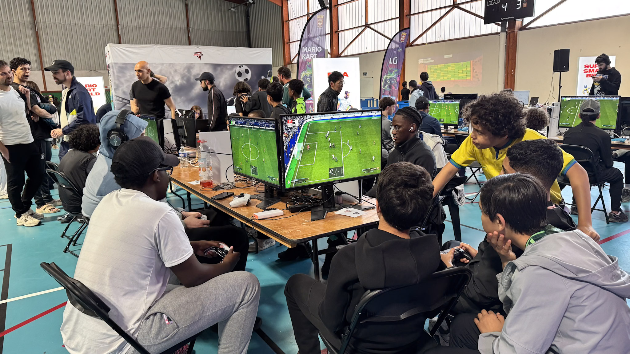 La zone freeplay proposait huit laptops avec plusieurs jeux dessus et quatre PlayStation 5 avec Street Fighter 6, Dragon Ball Sparking Zero, FC26 et NBA. Côté Nintendo, une Switch 2 accueillait Mario Tennis, tandis que trois Switch proposaient Cérébrale Académie, Mario Strikers, Bomberman et Overcooked. Deux consoles supplémentaires étaient dédiées à MarioKart Home. Just Dance permettait aux visiteurs de se défouler en musique. Avec un atelier de sensibilisation au handicap qui renforçait la dimension inclusive de l’événement.